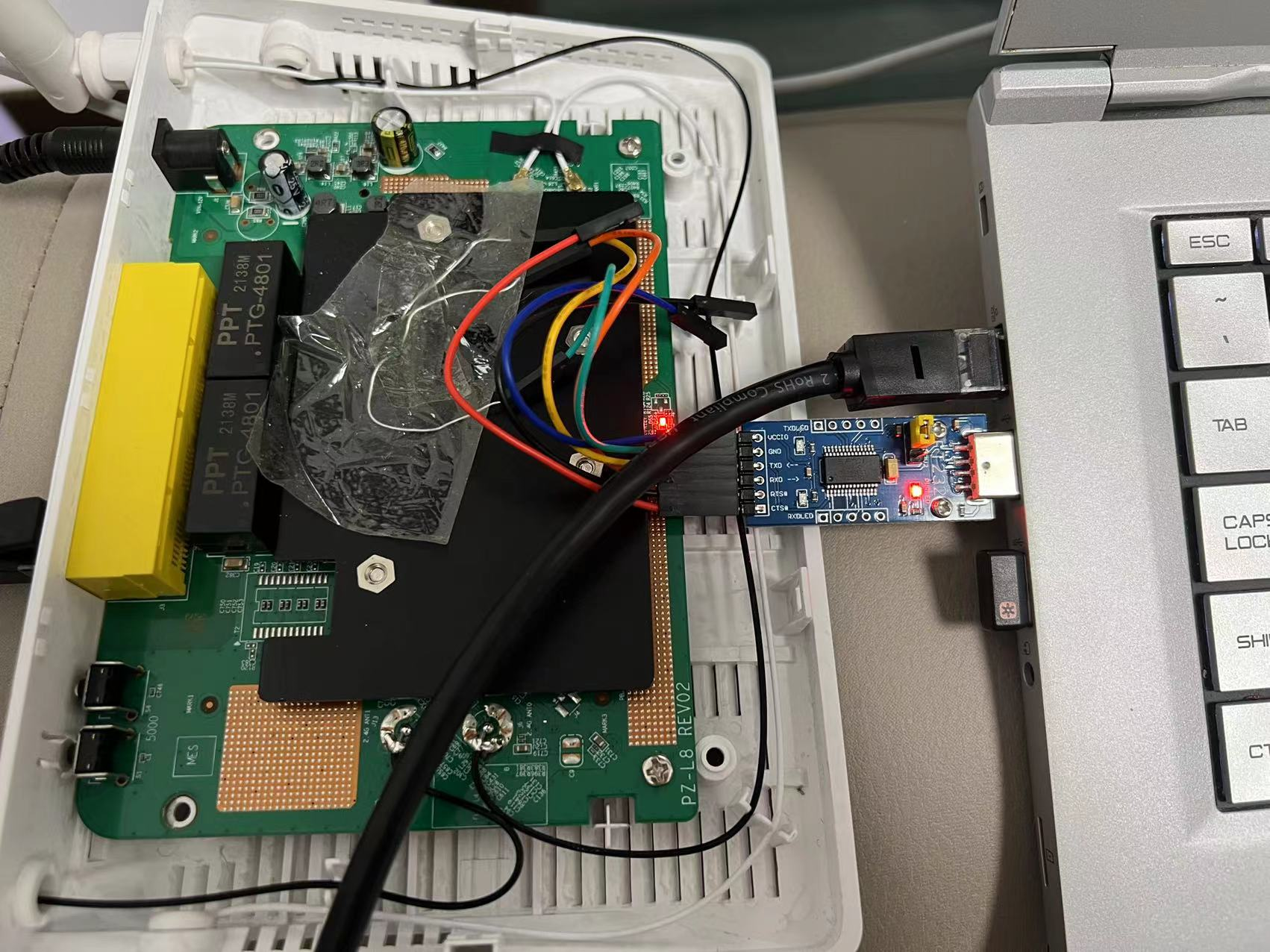 首先是拆开后盖,TTL接线,老规矩: