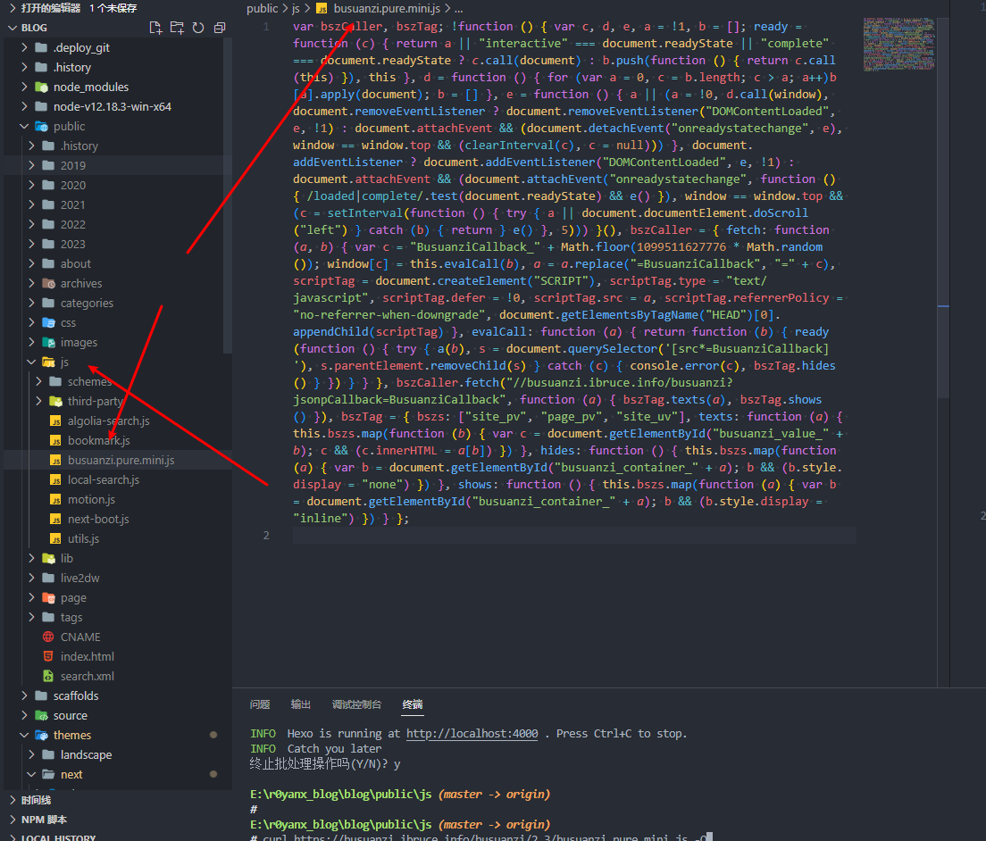 在js目录下创建busuanzi.pure.mini.js文件,内容如下: