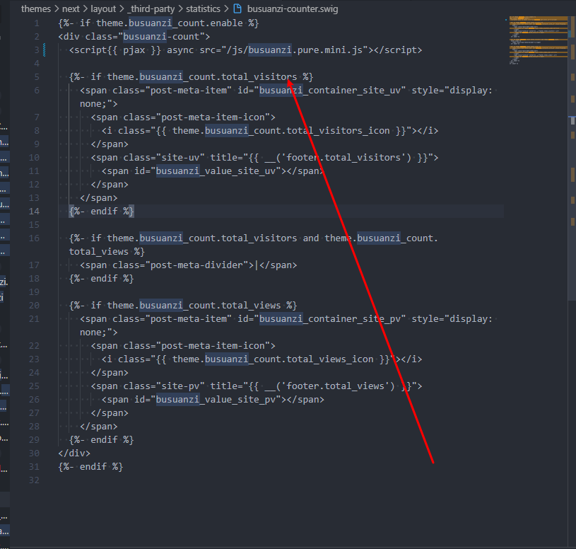 全局搜索busuanzi,找到类似下面代码进行修改。