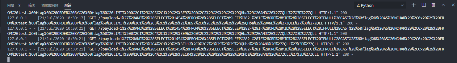然后使用sqlmap测试一下,因为是通过本地flask中转,我们的sqlmap的target应该是本地的flask服务端口,命令如下: