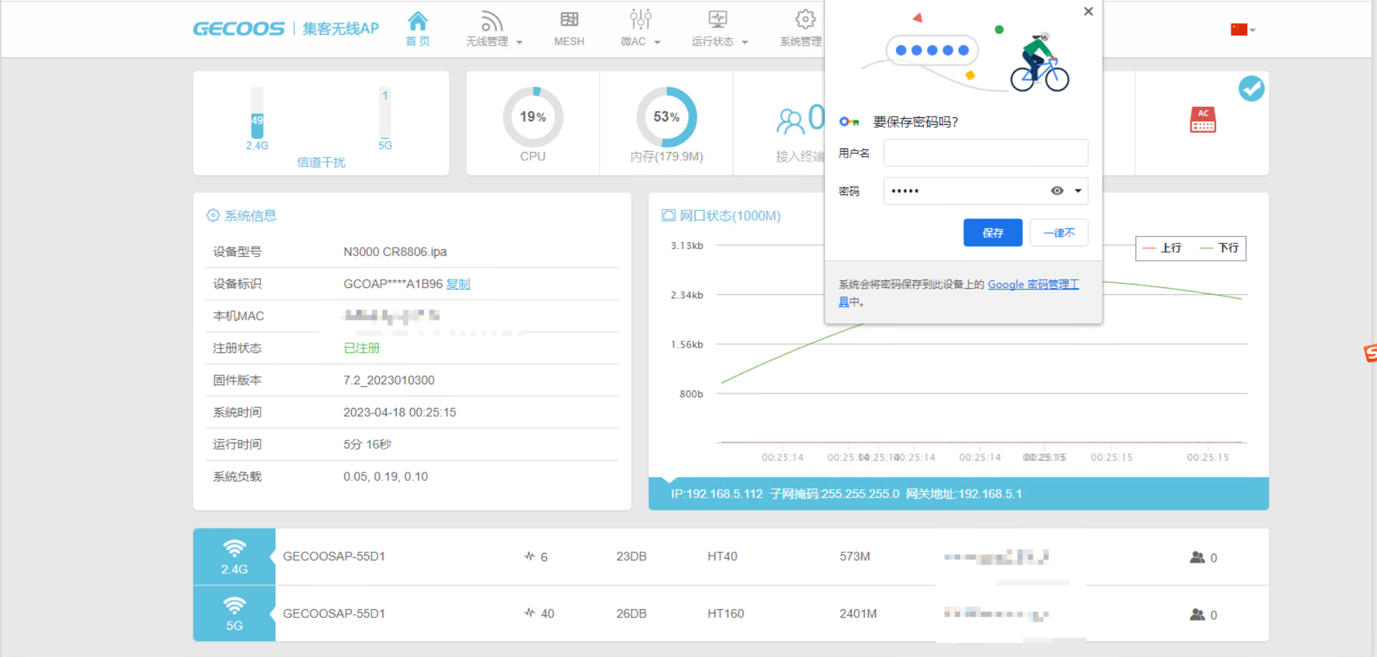 然后在浏览器地址栏输入该ip打开集客固件后台,输入密码admin即可进入集客固件后台了。