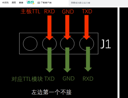 TTL模块接线要如下图对应: