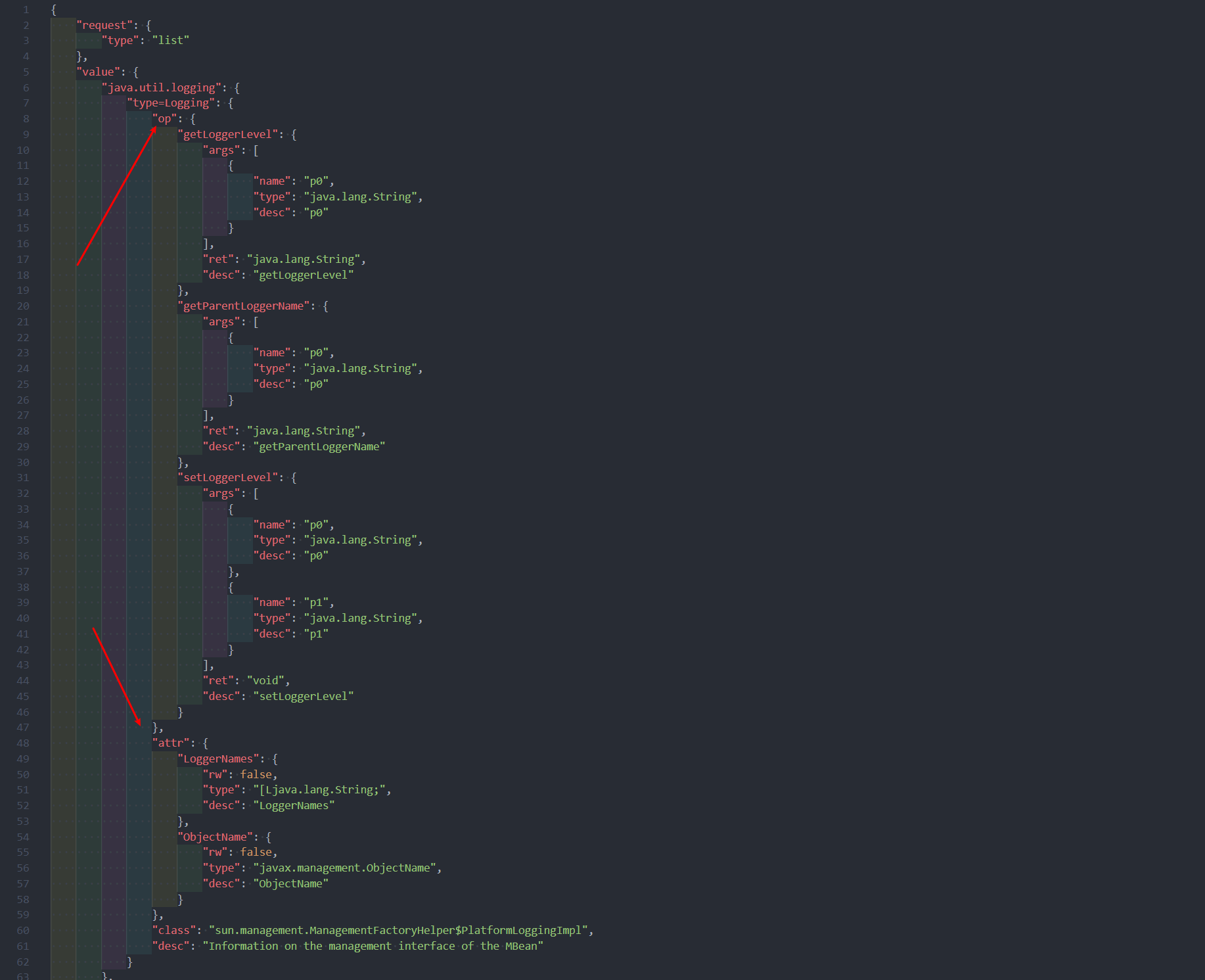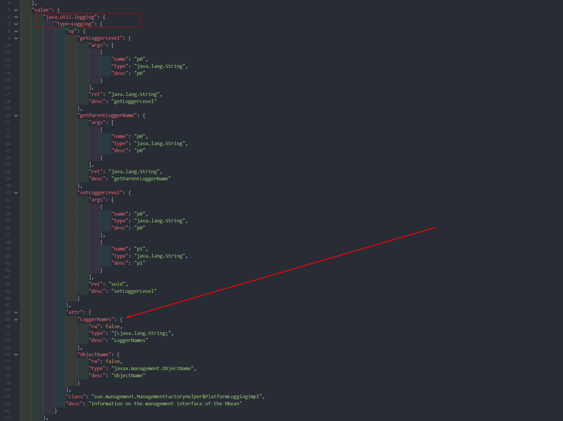 比如我要读取java.util.logging下type=Logging的attr里面的LoggerNames