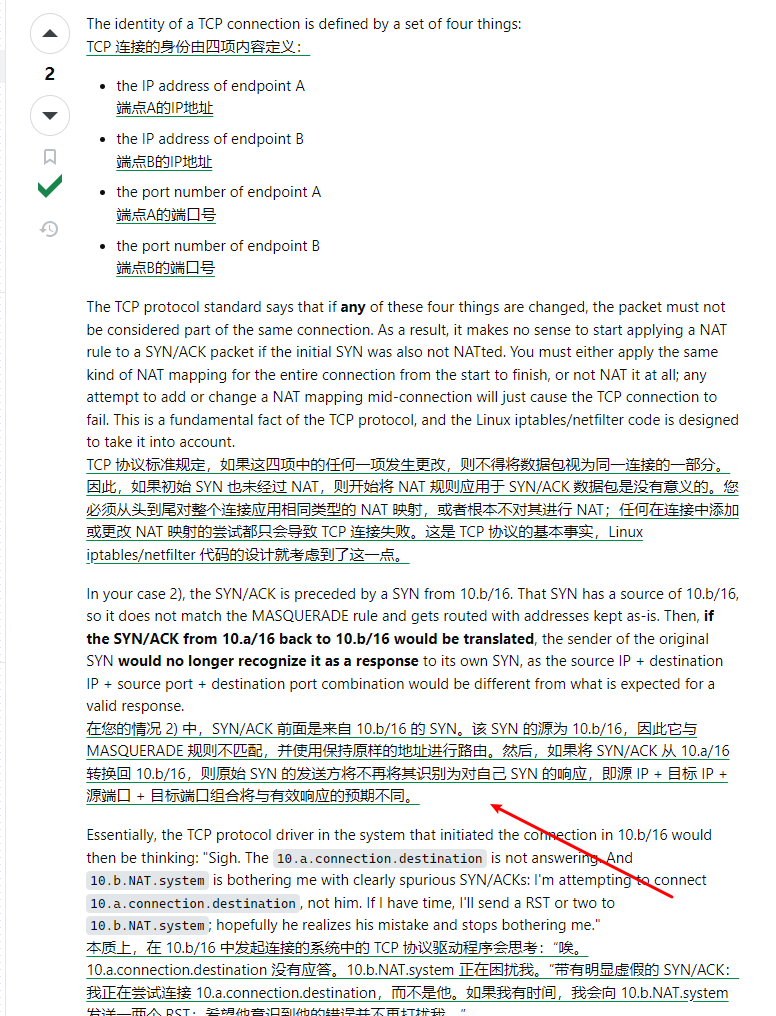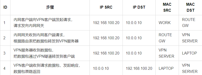 经过抓包分析,发现由内网客户端向VPN客户端发起请求时,VPN客户端的回应包不会被VPN服务器做NAT。
